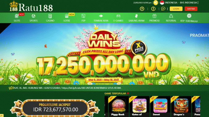 RATU188 Sebagai Situs taruhan online RATU188 adalah bandar games dengan permainan terlengkap dan terpercaya di indonesia yang sudah dipercaya oleh banyak pemain Indonesia. Hanya disini, Anda bisa mendapatkan banyak pasaran populer yang dapat dimainkan, seperti pasaran togel Singapore, pasaran togel Hongkong, pasaran togel Qatar, pasaran togel Sydney, dan masih banyak lagi. Tak hanya bermain judi tebak angka saja, RATU188 juga dikenal sebagai situs slot online karena menyediakan beragam jenis permainan slot terbaik paling seru beserta jenis judi taruhan lain, seperti tembak ikan, casino, sport dan lainnya.